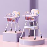 Luxury baby feeding chair makes your baby’s feeding time more fun and comfortable! A supportive seat cushion helps keep baby comfortable, and as the baby grows, the drawer is designed to be easy to wipe and remove with one hand and for dishwasher, straps and seat cushion can be conveniently wiped and machine washed. Keep your child within reach with the 360° rotating wheels. Baby feeding chair from 4 months to 5 years 2 levels of height.