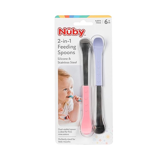 Nuby 2 in 1 Silicone and Stainless Steel Dual Ended Feeding Spoons for Baby
